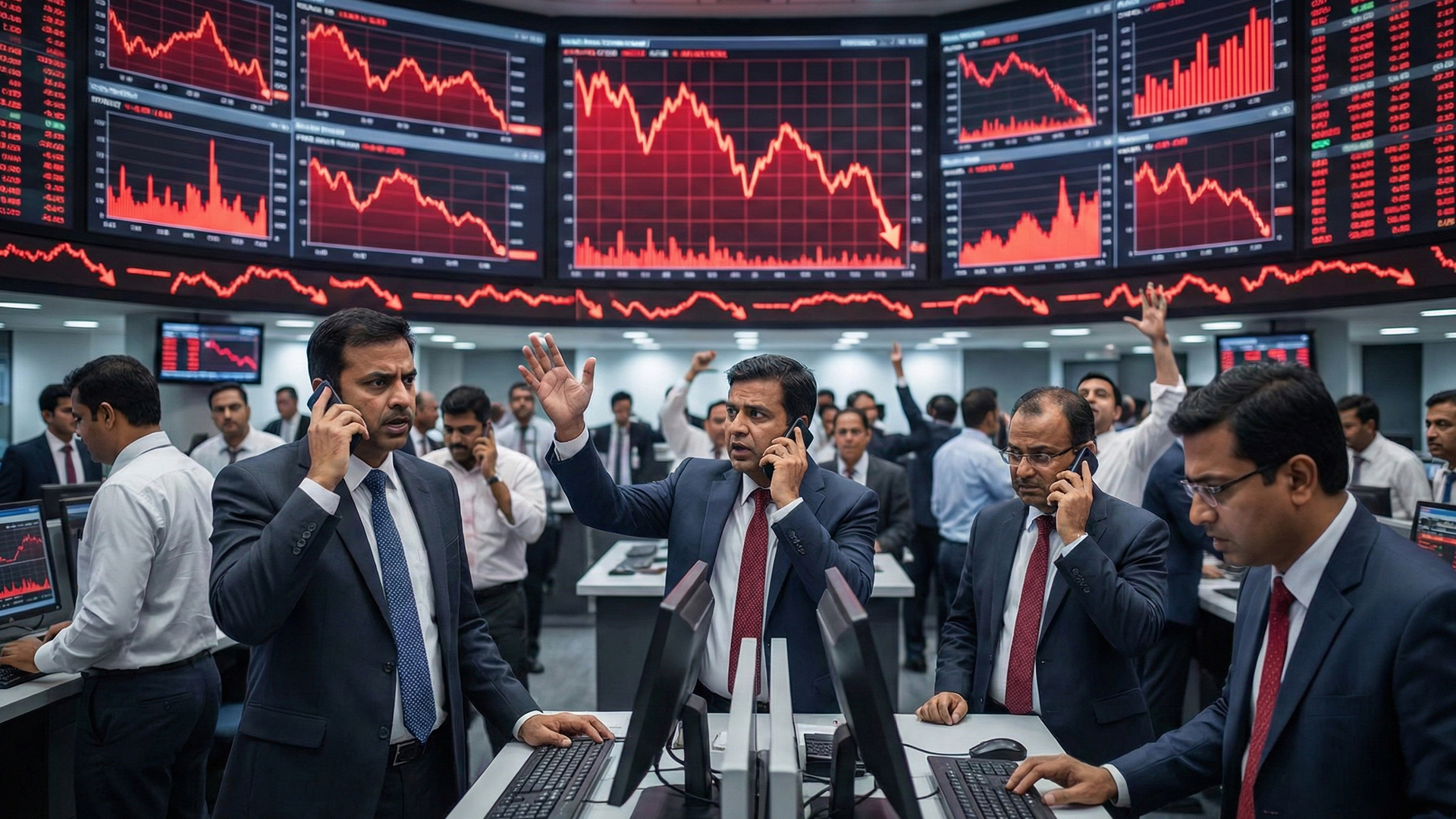 Sensex tumbles 1,236 pts, Nifty ends below 25,500