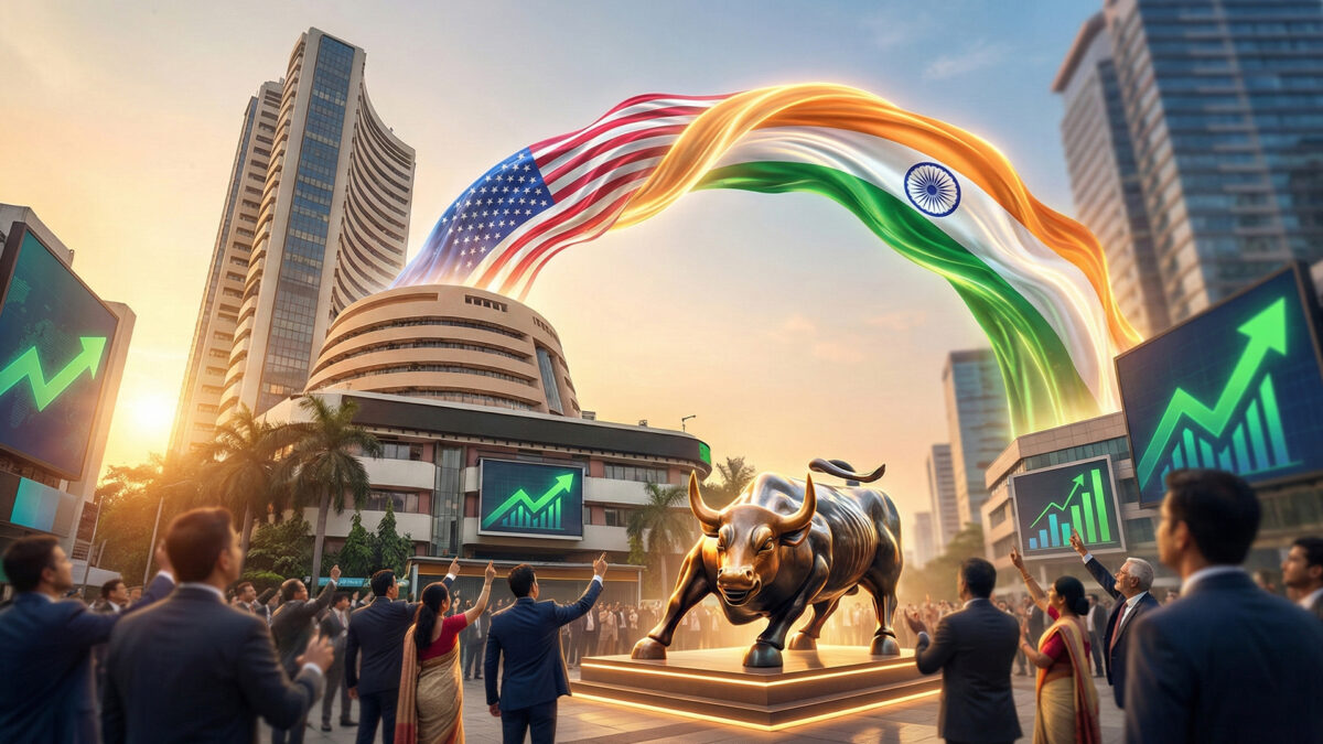 Markets rallied sharply on Tuesday as optimism over the newly announced India-US trade deal lifted investor sentiment where the BSE Sensex jumped 2,073 points to close above 91,000, while the Nifty50 crossed 25,700.